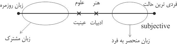 طرحوارة زیر به خوبی مرز وجوه مختلف زبان را نشان میدهد. ما هر چه به فردیترین حالات یعنی خواب، رویا، حدیث نفس و نقل خاطرات بپردازیم با ذهنیت سر و کار داریم و هر چه از آن دور شویم زبان مشترکی است که همه از آن استفاده میکنیم. مرز میان این دو عینیت وجود دارد. جو خاطراتش را طوری بیان میکند که سلیگمن دیگر نمیتواند باور کند. سلیگمن همه چیز را با یک قاعده علمی میسنجد گاه هندسه وارد میشود گاه تاریخ و گاه ریاضیات تا روایت جو برایش باورپذیر شود؛ اما روند روابط به جایی میرسد که میگوید دیگر نمیتواند باور کند یا جو هم در لحظهای از آن همه کلمات فرمولبندی شده خسته میشود. درست همینجاست که به زبان هنرهای مختلف خواهیم رسید. سینما در این جایگاه داستان یا رویا را روایت میکند و به همین واسطه جو به سلیگمن میگوید: «فکر می کنی چه جوری باید با داستان من کنار بیای؟ باورش کنی یا باورش نکنی!» قاعده ارتباطی فیلم نیز بدین گونه است. باورپذیری جایی شکل میگیرد که ذهن تأویلساز و تأویلگر (سلیگمن یا مخاطب) به هم میرسند و درست در همین جا شناخت حاصل میشود و در بخش دیگر در پارت دوم، وقتی جو داستان رویای خود را با آن دو شمایل تعریف میکند که هیچکدام را نمیشناسد سلیگمن به او میگوید: «داستان تو مثل یک بازگویی کفرآمیزه. بازگویی تغییر شکل یافته مسیح بر روی کوه که در کلیسای شرقی از مقدسترین متونه. اگر هر کسی دیگر این را تعریف میکرد فکر میکردم یک شوخی کفرآمیزه». سلیگمن معتقد است "اگر کسی دیگری جز جو آن را تعریف میکرد" و یعنی از جو شناخت پیدا کرده است و جو نیز به حرفهای سلیگمن بیشتر از پیش باور دارد. مرز زبان منحصر به فرد و علم، در اینجا هنر فون تریر است.